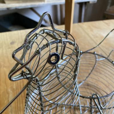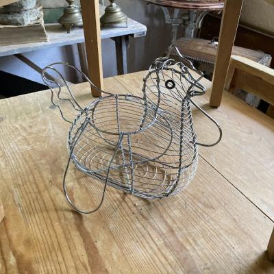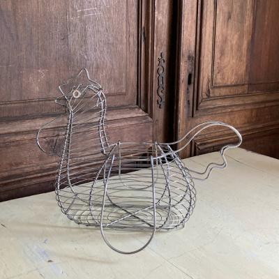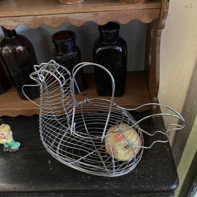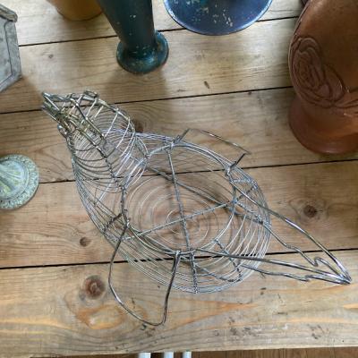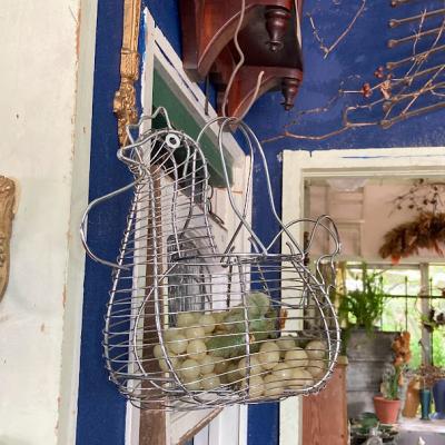 愛らしいニワトリ型のワイヤーバスケット【43-495】イギリスビンテージ、年代不詳。クッキングが盛んなイギリスのとても可愛らしいアイテムです。たまごを入れるだけではなく、果物や野菜なども見せる収納として活躍します。左右の翼が動くので、壁のフックに掛けて使うこともできます。現地セラーによると、グリーンを飾るプランターの代わりとしてもおすすめだそう!ワイヤープランツをいれても良さそうですね。福岡市南区の店舗にてお渡しもできますのでお気軽にどうぞ!※撮影に使用した小物は付属しません。