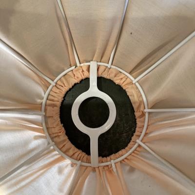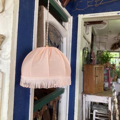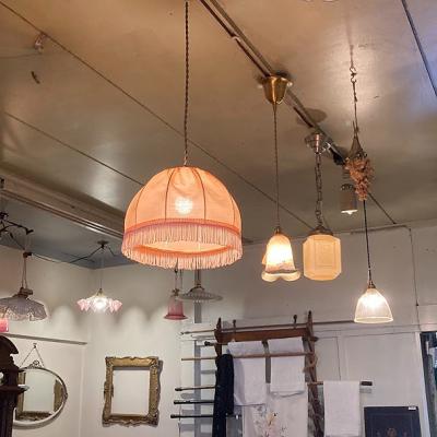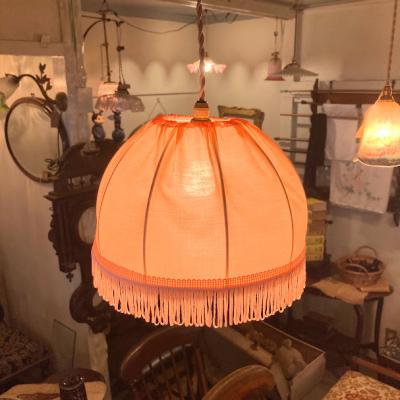 淡いピンクの布シェードが届きました【43-309】フランスのセラーより購入。丸みを帯びたシルエットが可愛らしい印象です。こちらはデッドストック、未使用品だったのでとても綺麗な状態です。(古いものではありません)