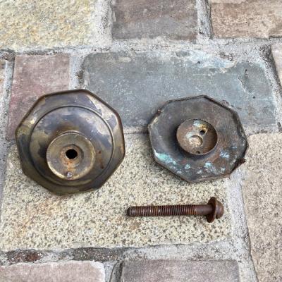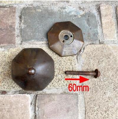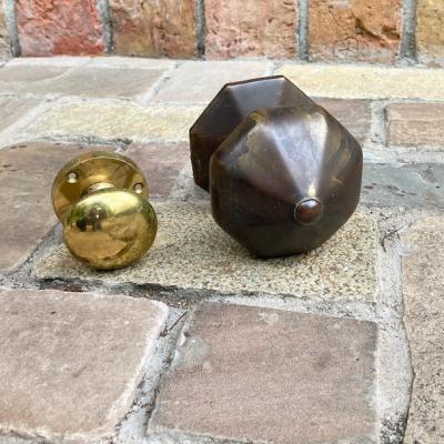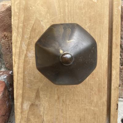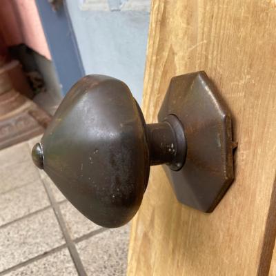 イギリスでは見かけることの多いセンターノブが届きました【41-30】こちらは縁起のよいと言われる八角形をベースにした形です。一般的なサイズのノブと比べると、その大きさに驚きます。イギリスの首相官邸や教会など歴史的な建物によく使われており、ぐっと力を入れて押し開けるため大きなサイズになっているそうです。ずっしりと重量感のあるたたずまいは、取り付けたドアをインパクトのある姿に変えてくれるでしょう!イギリス製、年代不詳。福岡市南区の店舗にてお渡しもできますのでお気軽にどうぞ!