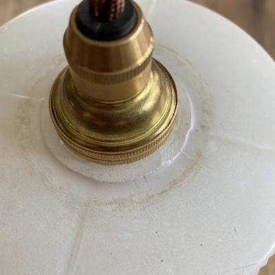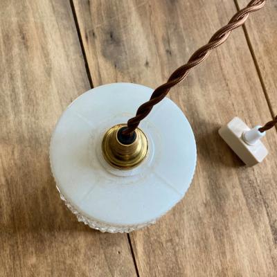 LED電球も使える、口金サイズE17の真鍮ソケットに加え、コードと角型シーリングは新しい物と交換してあります。撮影時コードは茶色、長さ約42㎝を使用していますが、コードの色は「黒、白、茶色、スモーキーベージュ」の中からお好きな色に交換できます。コードのみの長さ調整可能、50㎝以上の場合は別途有料となりますのでお気軽にお問合せください。福岡市南区の店舗にてお渡しもできますのでお気軽にどうぞ!