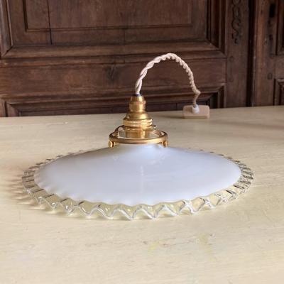 丸みを帯びたフリルミルクガラスシェード【43-C】 フランス