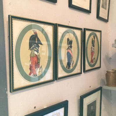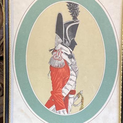ナポレオンが戦時中にイギリス軍の制服の歴史について出版した本の挿絵に基づいて描かれたアートフレームが届きました【44-410-C】年代不詳。美しい制服のシルエットが際立つ1枚です。顔の表情は見えませんが、その分制服のディテールが引き立っていますね。同じタイプの絵を並べて飾ると統一感が生まれ、より一層印象深い空間を演出することもできます。複数おまとめの場合は同梱しますのでお気兼ねなくお申しつけください。フレーム内に経年による色の変色や小さな傷を含みますが、それらも含めて楽しめる方におすすめ。福岡市南区の店舗にてお渡しもできますのでお気軽にどうぞ!