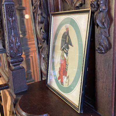 ナポレオンが戦時中にイギリス軍の制服の歴史について出版した本の挿絵に基づいて描かれたアートフレームが届きました【44-410-B】年代不詳。美しい制服のシルエットが際立つ1枚です。顔の表情は見えませんが、その分制服のディテールが引き立っていますね。同じタイプの絵を並べて飾ると統一感が生まれ、より一層印象深い空間を演出することもできます。複数おまとめの場合は同梱しますのでお気兼ねなくお申しつけください。フレーム内に経年による色の変色や小さな傷を含みますが、それらも含めて楽しめる方におすすめ。福岡市南区の店舗にてお渡しもできますのでお気軽にどうぞ!