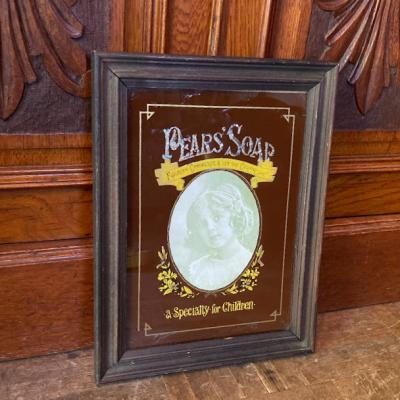 イギリスで200年の歴史を持つペアーズの「PEARS SOAP」ガラス広告が届きました【44-219】こちらの広告は1878年のパリ万博に彫像を出品したり、ジョン・エヴァレット・ミレイの絵画を広告に使用したりと当時からブランディングに力を入れていたペアーズの歴史を感じさせる素敵な一品です。愛らしい少女を中央に配したこの看板は、広告をお洒落なフレームとして魅せる手法が魅力的でお部屋のインテリアとしても楽しめます。1940年代のお品のため、ガラスの内側の印刷部分に一部張り付きが見られますが、これも含めて時代を感じていただけると思います。福岡市南区の店舗にてお渡しもできますのでお気軽にどうぞ!
