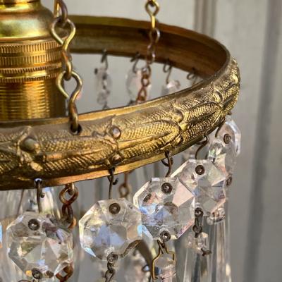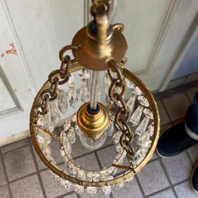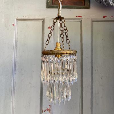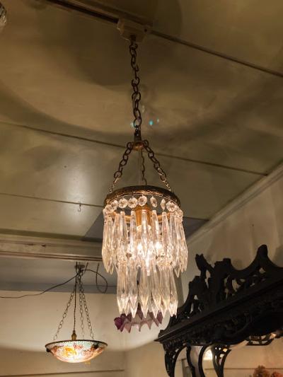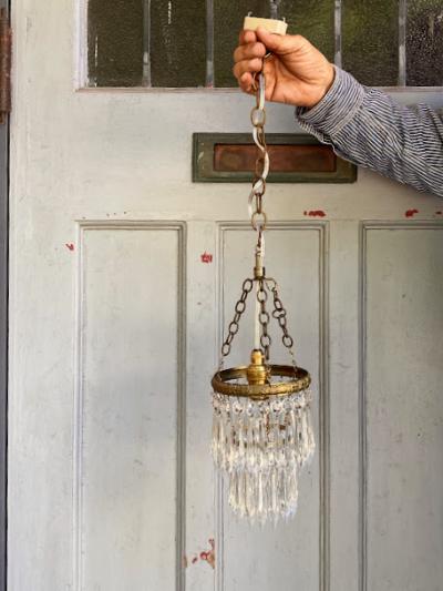ガラスの輝きが空間を彩る、フランス製のシャンデリアが届きました【44-76A】直径約12.5㎝と小ぶりなサイズですが、キラキラと煌めく佇まいがとても魅力的です。1940年代。日本の電球(口金サイズE17)が使用できるように交換済み、LED電球も使えます。角型シーリングにはフックを付属しているため、、チェーンで簡単に長さ調整が可能です。お部屋に華やかさと優雅さを添える、素敵な照明をお探しの方におすすめ。一つ一つのパーツはワイヤーで引っ掛けてあるだけなので、輸送時に外れることがあります。福岡市南区の店舗にてお渡しもできますのでお気軽にどうぞ!