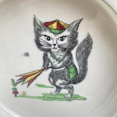 ゴルフをしている猫の絵柄がキュートな深皿が届きました【44-223】SPODE、ナンバー刻印あり、イギリス製、1940~56年。SPODE(スポード)とはジョサイア・スポードによって創立されたイギリスの陶磁器ブランドでロイヤルドルトン、ウェッジウッド、ヘキストトともにイギリスの4代名窯の一つです。紳士のスポーツらしく可愛い帽子を乗せた猫の様子は思わず笑みがこぼれます。猫好きの方はもとより、ゴルフ好きな方にもおすすめ。大きな破損などはありませんが、裏面、ヘリの部分に製造時にできた小さな傷凹みがあります。福岡市南区の店舗にてお渡しもできますのでお気軽にどうぞ!