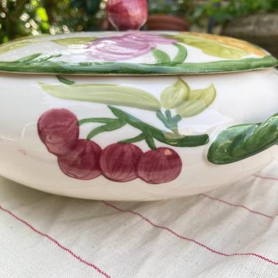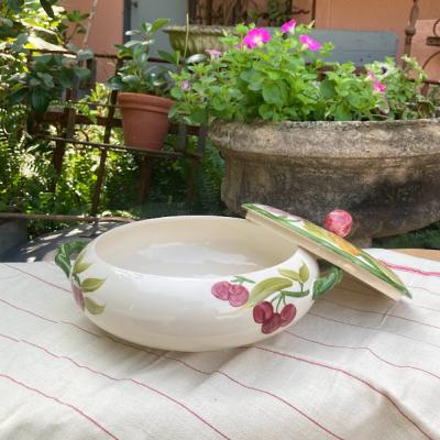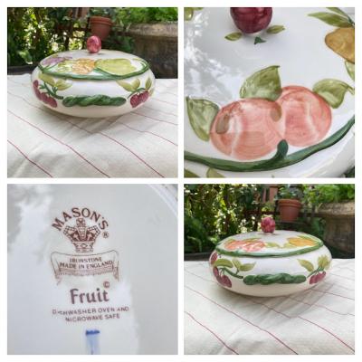 1796年にロンドンで創業され今もなお愛され続けているMASON’Sのチュリーンが届きました【44-152】白いベースに手書きのフルーツデザインも素敵ですが、Fruitシリーズに多用されているねじれたハンドルが特徴です。つまみの赤い実のような部分も可愛らしく、テーブルの上を華やかに彩ってくれそうですね。お気に入りお菓子のを入れたり、小物を収納しても良さそうですよ。福岡市南区の店舗にてお渡しもできますのでお気軽にどうぞ!