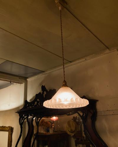 ぷっくりとしたデザインのフランス製ガラスシェードが届きました【44-64-A】無数の気泡をまとった姿は宝石のように輝き、心をときめかせるたたずまいです。同じデザインのものがありますのでペアで使ってもいいですね!外側はつるんとした質感で、内側はマットになっています。