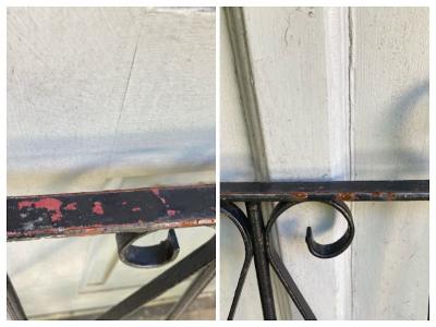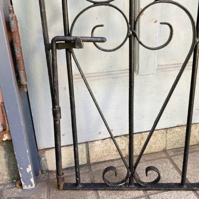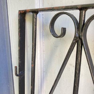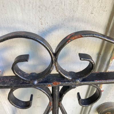 一人でも楽に移動できるアイアンフェンスが届きました【43-42】片方には固定用に使用されていた金具が2か所付属。もう片方の下部分には落とし棒が付属しています。グリーンとの相性がいいのでつる系の植物を這わせたり、壁の装飾としても活躍します。イギリス製、年代不詳。古い商品のためペイントの剥がれや錆を傷を含みますが、お気に入りの色にペイントしてもいいですね。自分だけの特別な空間をDIYしたい方におすすめ。