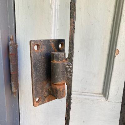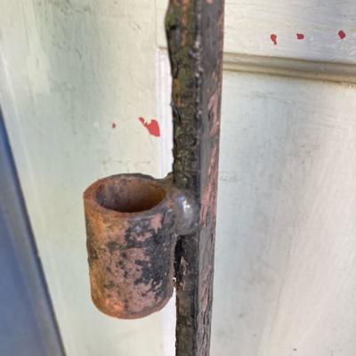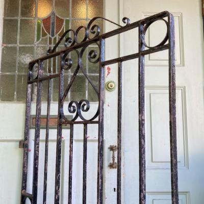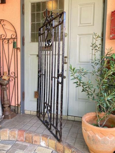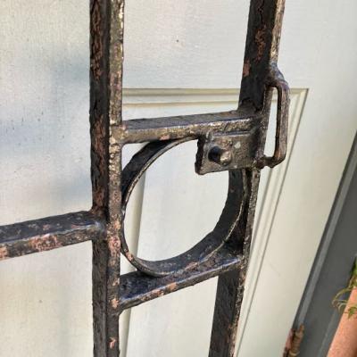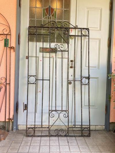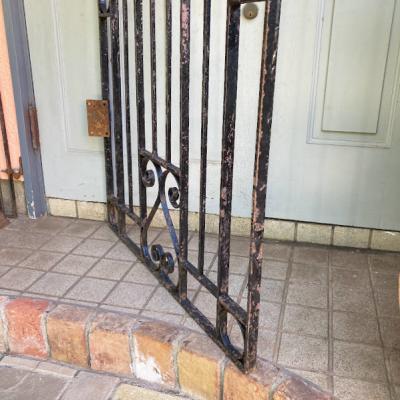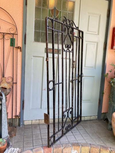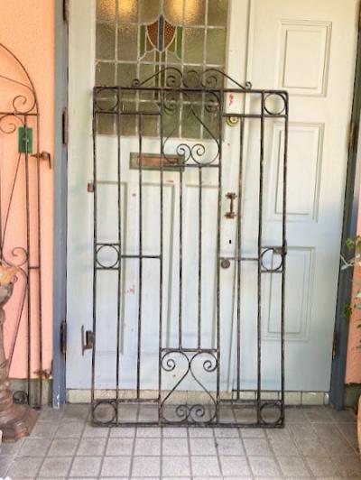通常のアイアンよりも厚みがあるため、ずっしりと重いアイアンフェンスが届きました【44-249】スクエアの重厚感のあるたたたずまいは、ひと味違う存在感があります。お庭はもちろん、室内でも壁面や窓辺のインテリア、つるバラのフェンスとしても活躍してくれるでしょう。側面に可動式の金具上下2か所、反対側には内径5mmの金具がとりつけられています。推定1930年代、イギリス製。アンティークらしいサビやペイントの剥がれ傷などを含みますが味わい深い仕上がりです。取り付けをお考えの方はご自身の契約されている施工業者さまにお問合せください。福岡市南区の店舗にてお渡しもできますのでお気軽にどうぞ!