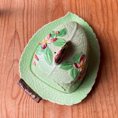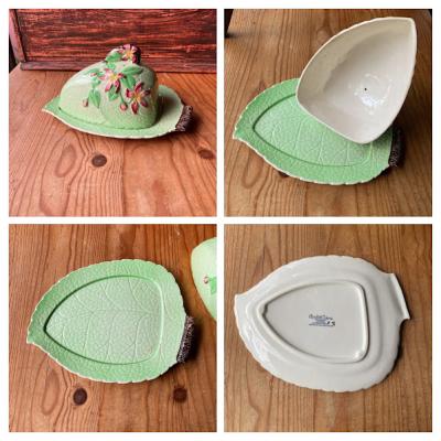 イギリスの名窯といわれるカールトンウェア【44-337】こちらはチーズやケーキを入れるものです。日本の食器では見ることの少ない立体的でカラフルな葉っぱや花びら花びらをかたどったものが多く、独創的な作品たちは1950年代にとても人気がありました。自然やアフタヌーンティーを愛するイギリスらしい作品です。テーブルを彩るアイテムをお探しの方におすすめ。福岡市南区の店舗にてお渡しもできますのでお気軽にどうぞ!イギリス製、1950年代