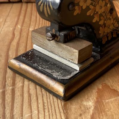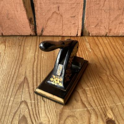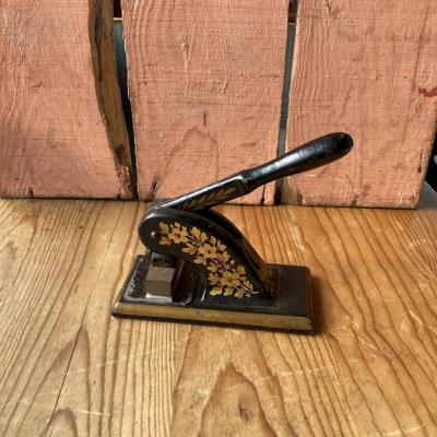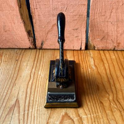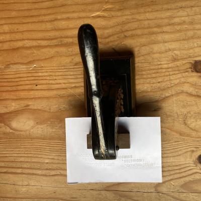 デスクトップ型の小さなアドレススタンプ エンボッサーが届きました【44-385】イギリスでは社印や・公印として使われていたようです。ハンドルを押すと型押しの住所が浮かび上がります。金彩を施した美しいたたずまいは、デスクの上に素敵な空間が生まれますね。年代不詳