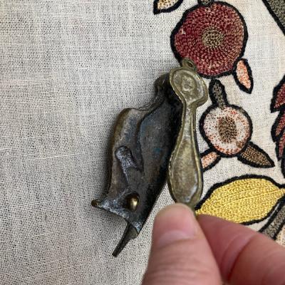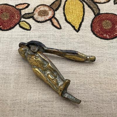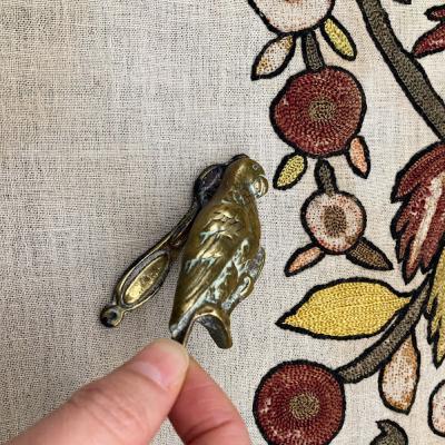 小さな真鍮のドアノッカーが届きました【44‐90】オウムの可愛らしい尾をつまんで鳴らすと、コツコツと可愛らしい音がします。部屋のドアやお手洗いなどに遊び心のあるインテリアとしておすすめ。イギリス製、年代不詳。