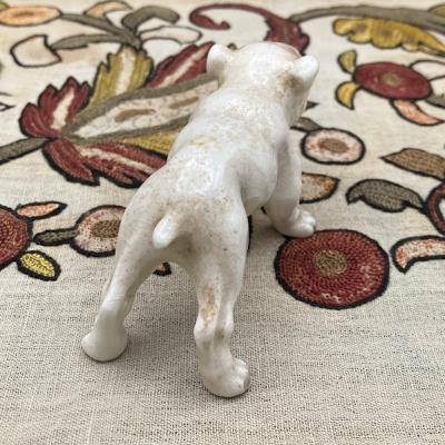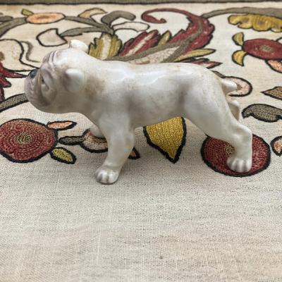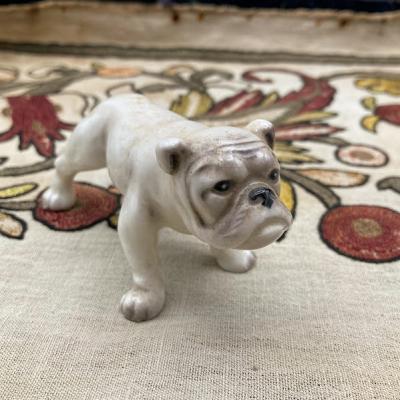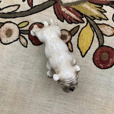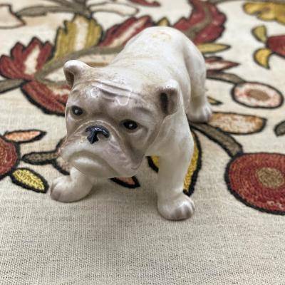 ドイツの陶磁器メーカー「ゲーベル社」が製作した犬の置物が届きました【44-GD】手のひらサイズに加え、上目遣いで下から見上げる表情がとても愛らしい品です。ゲーベル社は1871年に創業した歴史ある会社で、フンメル人形の販売で有名ですが、その他にも可愛らしい動物のフィギュアが世界中のコレクターに愛されています。こちらは裏のスタンプから1950年代に輸出用に制作された商品のようです。昔から犬とともに過ごすヨーロッパらしい作品ですし、お宅のワンちゃんに似ていたら嬉しくなりますね!