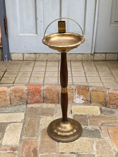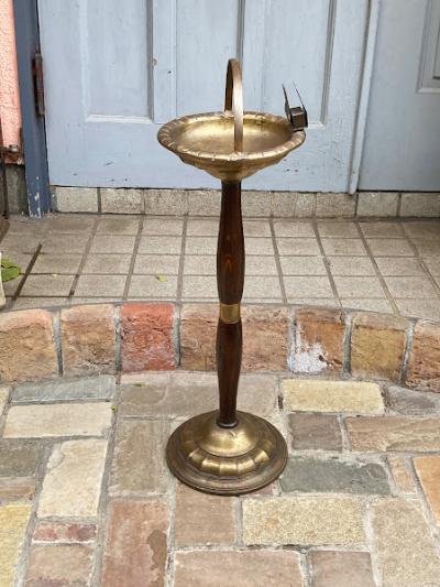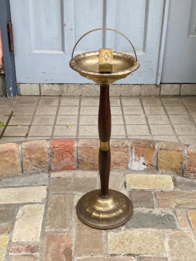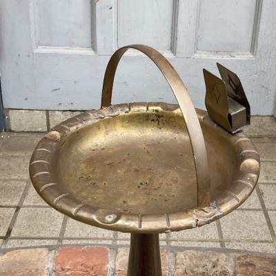 贅沢に美しく作り上げたアッシュトレイスタンドが届きました【44-309】木目のきれいなオーク材の組み合わせは、置く場所をシックに演出してくれます。喫煙するための道具でしたが、たたずまいが美しいので、トレイ部分にお花や雑貨を飾っても素敵ですね。真鍮のような色味ですが、微妙に磁石がくっつくのでミックスされた金属のようです。オリジナルの使い方をお楽しみいただける方におすすめ。イギリス製、推定1940年代