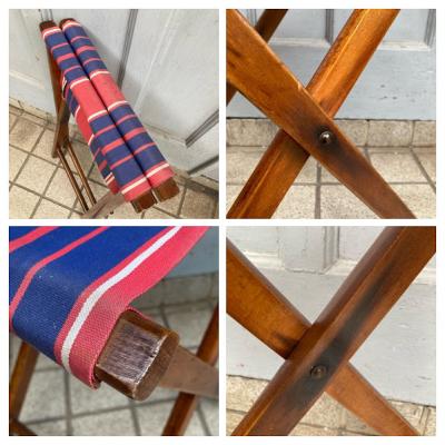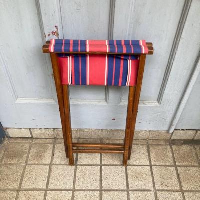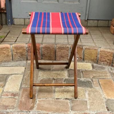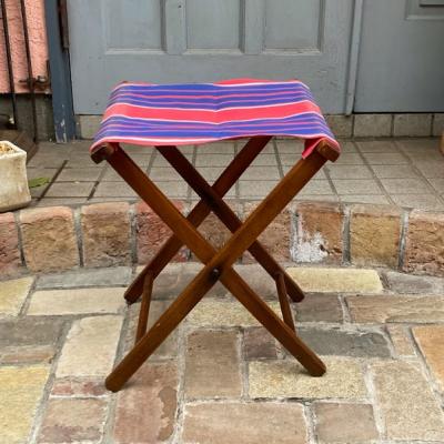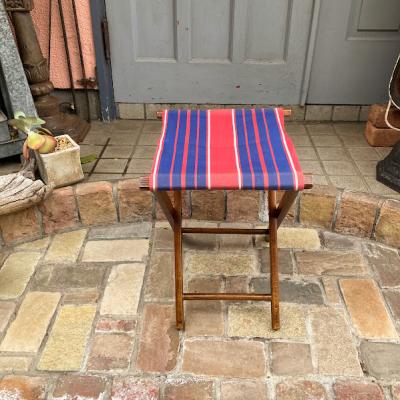 ユニオンジャックを思わせるカラーリングの折りたたみスツールが届きました【44-339】持ち運びしやすいのでキャンプやお花見などにも便利ですね。イギリス製。推定1960年代。ビンテージらしい傷や座面部分に色の退色などを含みます。使い込まれた雰囲気に魅力を感じる方におすすめ。福岡市南区の店舗にてお渡しもできますのでお気軽にどうぞ!