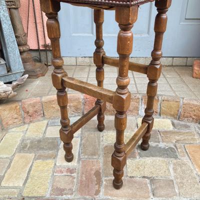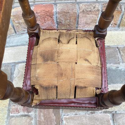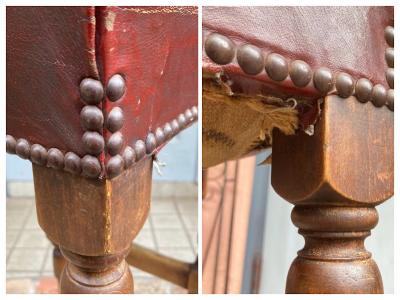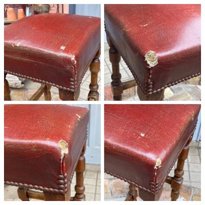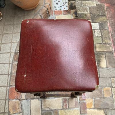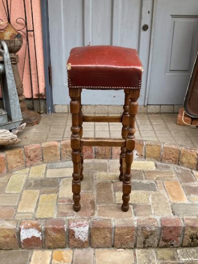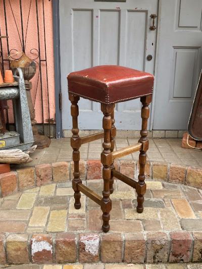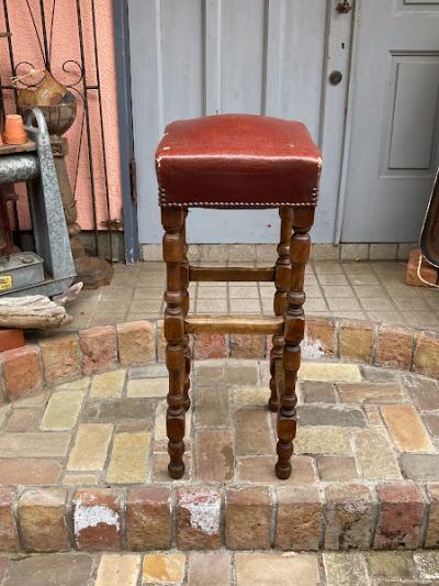 高さ約88㎝のカウンターチェアが届きました【43-316】座面の角にダメージがありますが、レザーには鋲が施され使い込まれた風合いがとても素敵です。木製でこのようにカッコいい雰囲気のものは少ないので、傷も含めて楽しめる方に特におすすめ。裏面のざっくりしたベルトもいい感じです。かなり背の高いタイプですので、お持ちのテーブルやカウンターの高さと合うかご確認ください