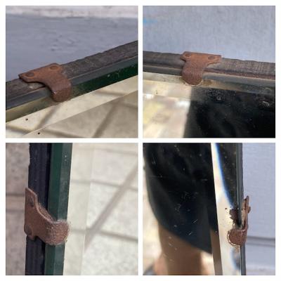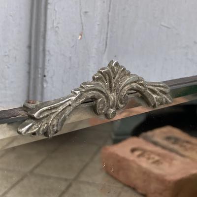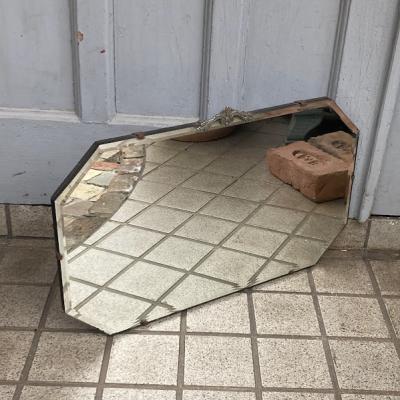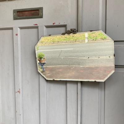 オクタゴン(八角形)のビンテージカットミラーが届きました【40-37】トップあるワンポイントの飾りがアクセントになっています。シンプルな鏡はどの場所にも馴染み、日々の生活を見守ってくれることでしょう。裏のチェーンは現地で交換されたようです。鏡を固定している金属パーツには錆や古い鏡によく見られる黒いツブツブがありますが、それらがこの鏡の歴史を証明してくれています。シンプルで落ち着いた雰囲気の鏡をお探しの方におすすめ。福岡市南区の店舗にてお渡しもできますのでお気軽にどうぞ!