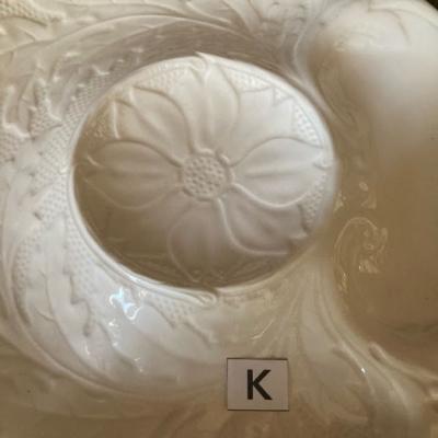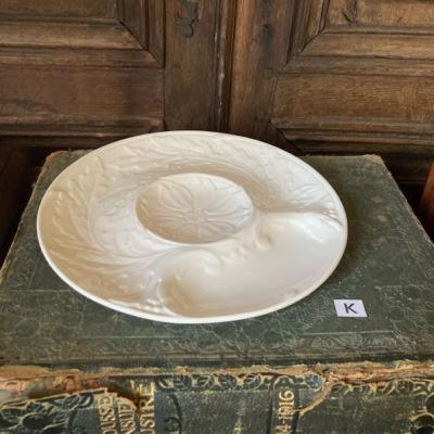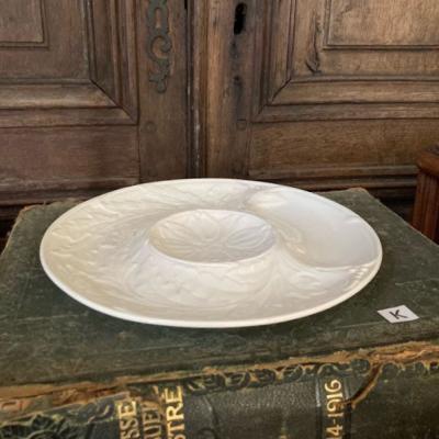 でこぼことした立体的な模様を施したジアンのアーティチョークプレート【41-237-K】現地のセラーによるとアーティチョークやアクセサリートレイとして使うのよ!とのことでした。比較的新しい1971年~84年の白いお皿は、まだまだ現役で活躍しそうですね。製造時に混入した凹凸、うっすらと貫入がございます。一つ一つコンディションが違いますので画像をしっかりとご確認ください。アクセサリートレイやパーツのディスプレイ皿をお探しの方におすすめ。福岡市南区の店舗にてお渡しもできますのでお気軽にどうぞ!