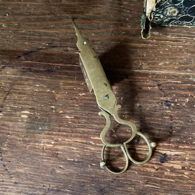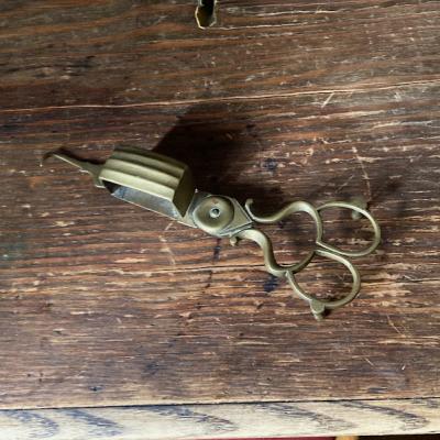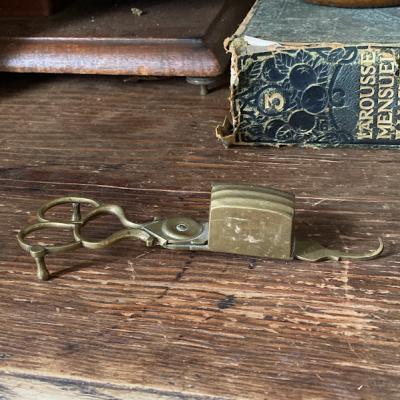 ハサミのような形のろうそく消し(キャンドルスナッファ―)が届きました【37-256】火の灯っている部分の芯を四角の部分でハサミの要領でカットして使うそうです。英国らしい何とも優雅な気分にさせてくれるアイテムですね。今は洋風のお仏壇なども増えているので、ひと味違うアイテムを使いたい方におすすめ。イギリス製、真鍮、推定1940年代。福岡市南区の店舗にてお渡しもできますのでお気軽にどうぞ!