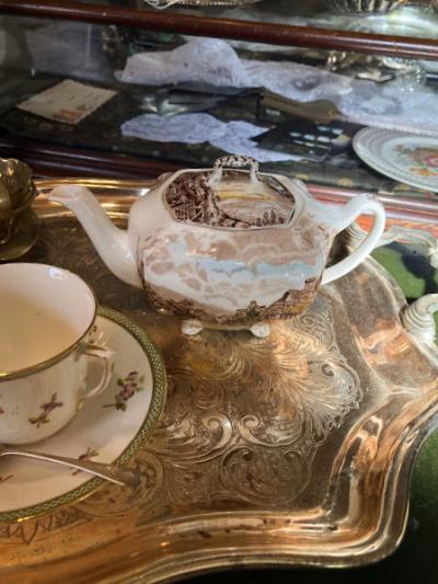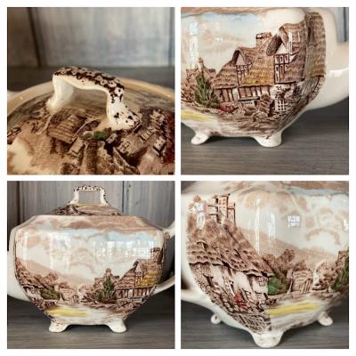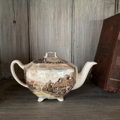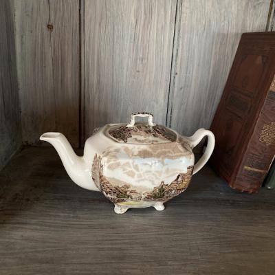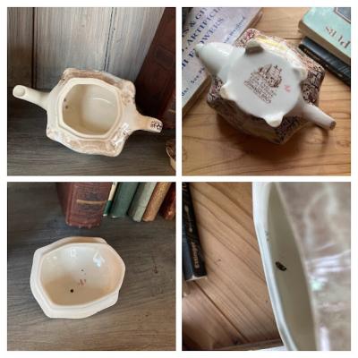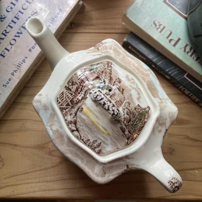 1833年に創業された英国の陶器ブランド、ションソンブラザーズのポットが届きました【44-333】1968年にウェッジウッドに買収され40年以上グループの傘下にありながらも、1970年にはエリザベス女王により王室御用達の称号を獲得している老舗のメーカーです。こちらは古き良き英国の田園風景を繊細に描いた1970年代の作品です。少し小ぶりなサイズは少人数のティータイムに活躍しそうですね。内側に黒く見えるところがありますが、製造時に外側のプリントが内側に張り付いているようです。そのまま飾っても素敵ですよ。福岡市南区の店舗にてお渡しもできますのでお気軽にどうぞ!