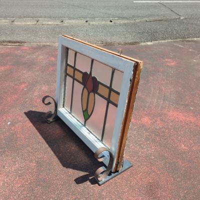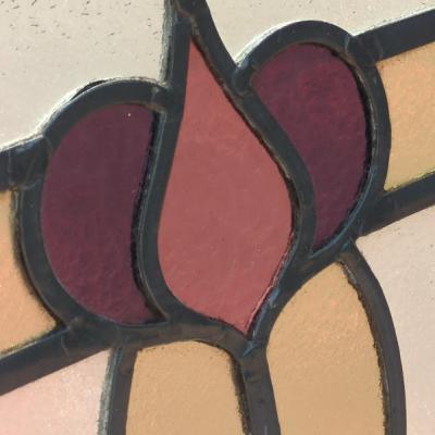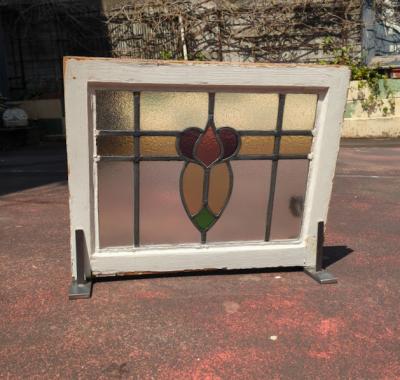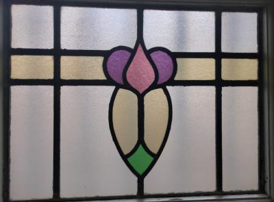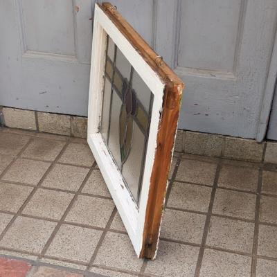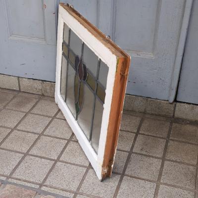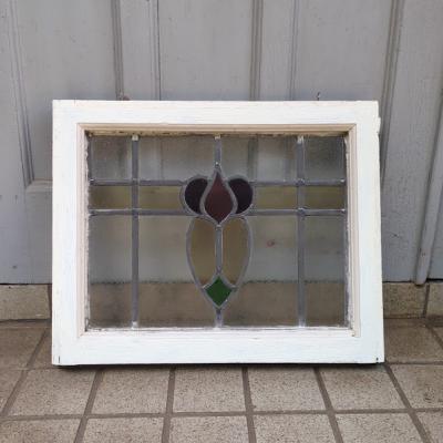 パープル系の優しい色合いで造られたステンドガラス【38-2-2】すべてのガラスが不透明なガラスのためプライバシーも安心ですね。ガラスにはアンティークガラス特有の気泡を含みます。店舗での展示用にはてなフックを付属していますが、発送時には取り外してお届けします。ガラス部分に割れはありません。木枠部分は白くダイナミックに塗装されていますが、経年による傷や凹凸、ペイント剥がれを含みます。破損を考慮し木枠の取り外しは行っておりません。落ち着いた雰囲気のお部屋作りを楽しんでいらっしゃる方におすすめ