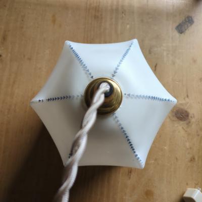 口金は日本仕様の真鍮口金E17サイズに交換済み。LED電球にも対応します。コードは白・黒・茶・スモーキーベージュの4色から、お好きな色に交換可能、長さの延長はできますのでお問合せください(有料)撮影時には白熱球(電球色25W)を使用しているためオレンジぽい色合いに見えます。使用する電球の明るさやワット数によって見え方が変わるのでお部屋にあった明るさをご使用ください