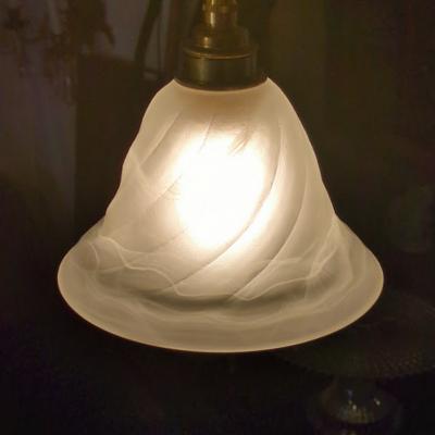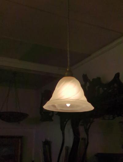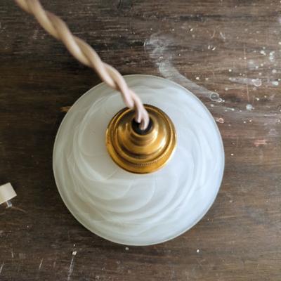 マーブルのグラデーションが美しいガラスシェードが届きました【44-26】厚みのあるガラスは電球の明かりを優しく包み込むような印象を受けます。お部屋のインテリアを引き立てるデザインは使う場所を選ばず楽しめそうです。イギリス製、推定1950年代