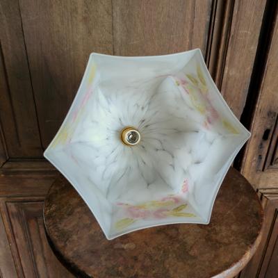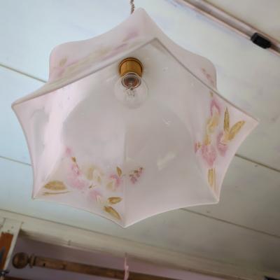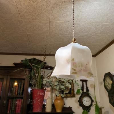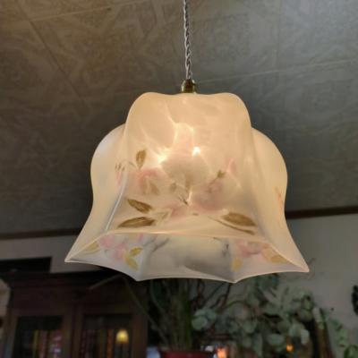 内側に愛らしいピンクの野花が繊細に描かれたガラスシェード【44-357-A】