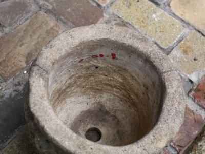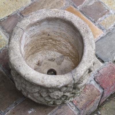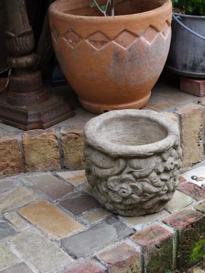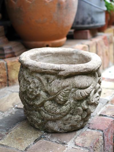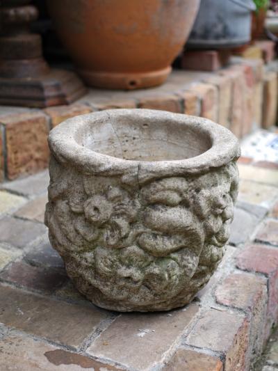 イギリスアンティークのセメント鉢【44-184-B】3か所ヒビが入っているため通常の半額にてお届けします。かなり厚みがるので、すぐに割れてしまう感じではありませんが、気になる方は購入をお控えください。