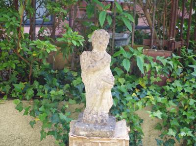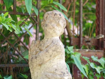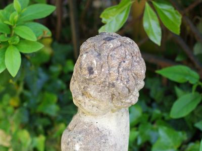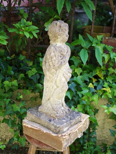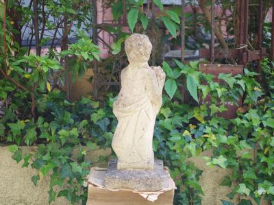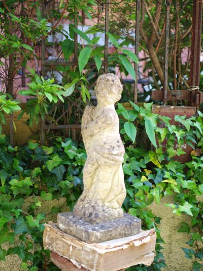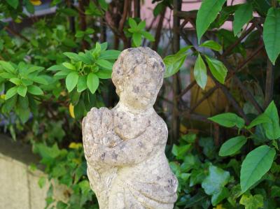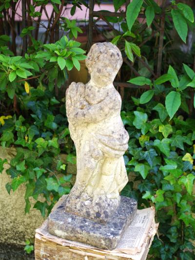 豊穣のシンボルである稲穂を抱えてたたずむオーナメント【44-325】この優しい佇まいは、その空間に穏やかな空気感を運び込んでくれますね。時を経て生まれた独特の風合いは、自宅に届いたその日から自然とお庭の一部になり、まるでずっとそこにあったかのように馴染みます。海外では室内を飾る装飾としてもよく見かけるアイテムです。ぜひお気に入りの空間に置いてお楽しみください