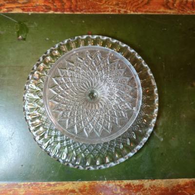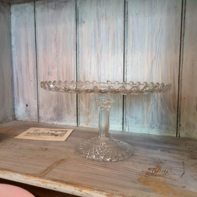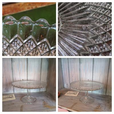 プレスガラスのケーキスタンド【44-192】イギリス製 年代不詳
