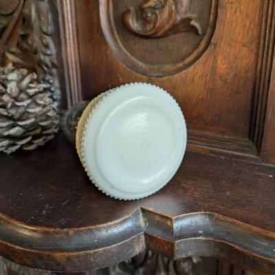 昔むかしの静かな夜、小さなオイルランプがほのかな光を放ち、お部屋に優しい明かりを届けていたのでしょう。ぽってりと厚みのあるガラスが光を柔らかく包み込み、影を揺らす様子はまるで優しく語りかけるよう。時代を超えて癒しを与えるその姿に、古き良き時代のぬくもりを感じることができますね。