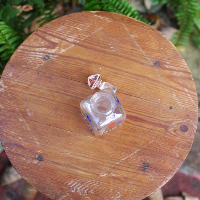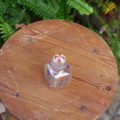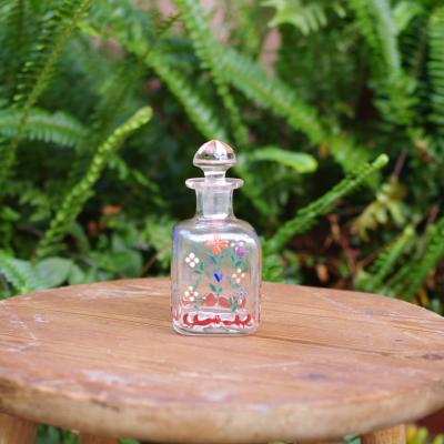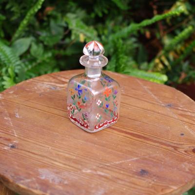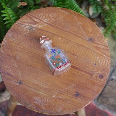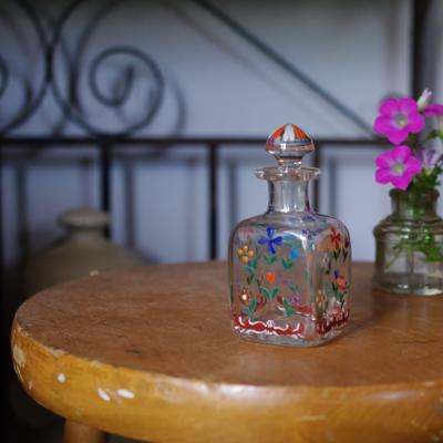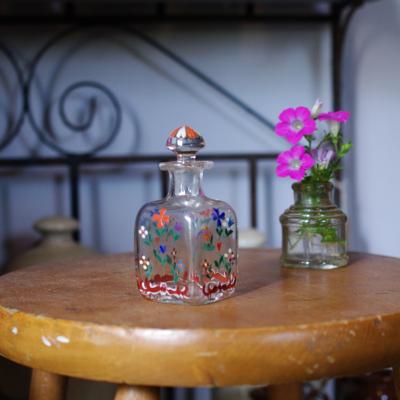 ブルーとオレンジの小花が織りなす愛らしいハンドペイントのガラス瓶【44-358】 イギリス製 年代不詳