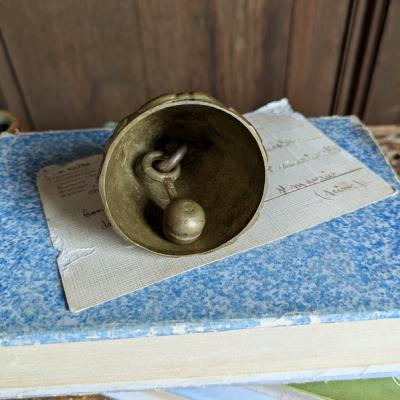 ベルを鳴らせば、チリリン♪と澄み渡る音色が心に優しく響きます。呼び鈴としての実用性もさることながら、時を経て深みを増した真鍮の色合いは、ただ置いておくだけで空間に品格を添えますよ