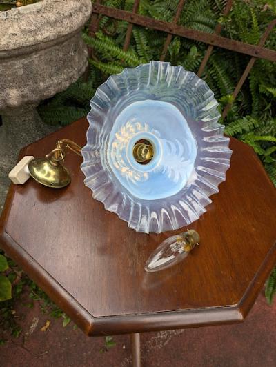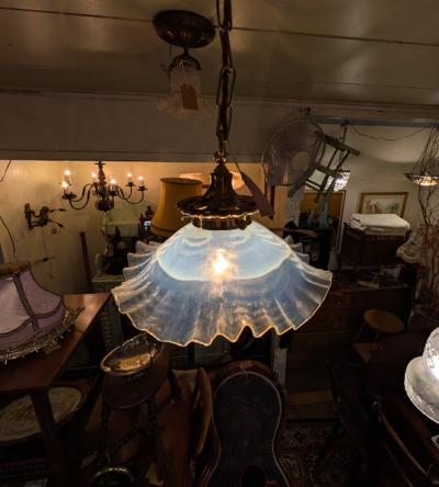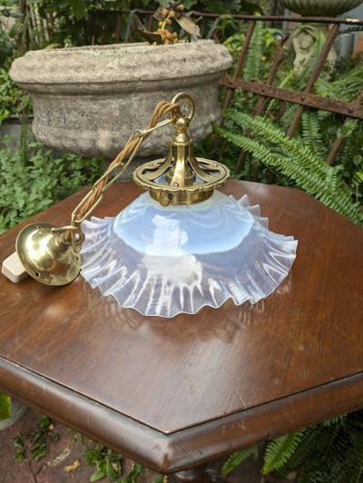 オパールセントガラスのアンティークペンダントライト【45-237】