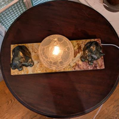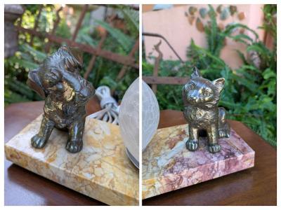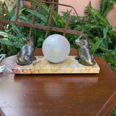 ブロンズの犬と猫をあしらったアール・デコランプ【45-426】 1930年代頃 フランス製