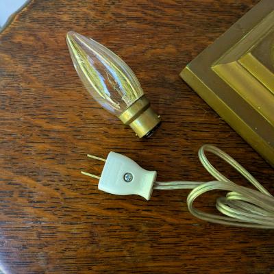 コードは日本仕様の新品に交換済み。シェードの根元にON・OFFの黒いスイッチあり。電球は海外仕様の口金「B22」を使用。撮影時は点灯確認用の白熱球25Wを使用していますが、10Wぐらいの暗めの方が雰囲気が出ます。コードの長さ調整もできますのでお気軽にどうぞ!