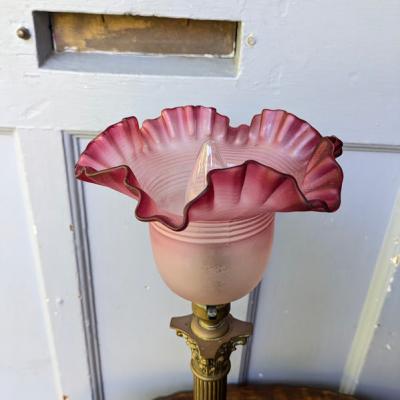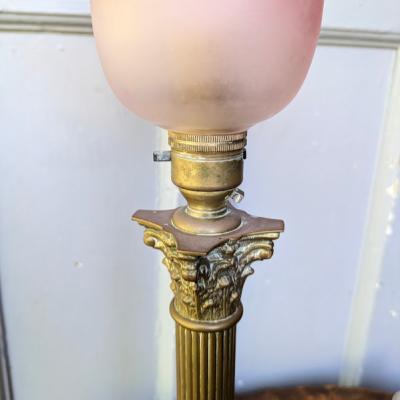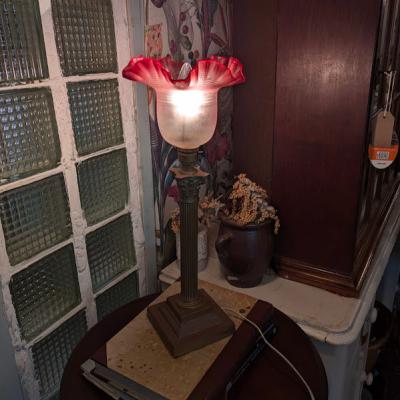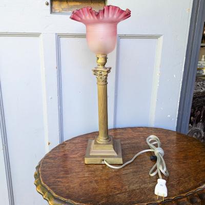 ずっしりとした真鍮製のコラム(円柱)型台座に、可憐なフリルシェードが組み合わされた、クラシカルで人気の高いスタイルの照明【45-206】