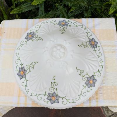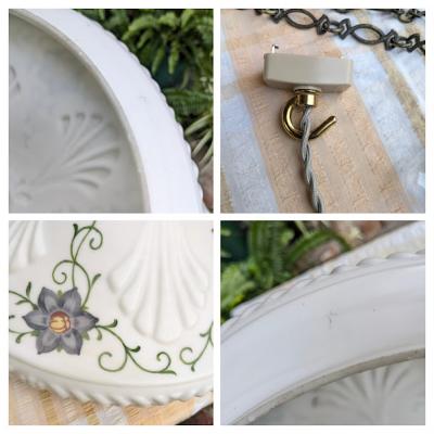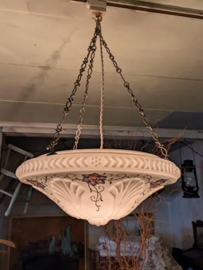 柔らかな乳白ガラスに、蔓草と花がハンドペイントで描かれたエレガントなハンギングボウル【45-267】イギリス製 推定1930年代
