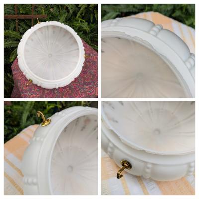 優美なハンギングボウル型の吊り下げ照明は、柔らかな光で空間を包み込みます。金属チェーンは使い込まれた錆を含む当時のスタイルを保ち、口金やコードは日本仕様に変更済みのため、国内でそのまま安心してお使いいただけます。3本のチェーンを引っ掛けるだけのシンプルな構造は、初めてアンティークの照明をご利用の方にも簡単です。