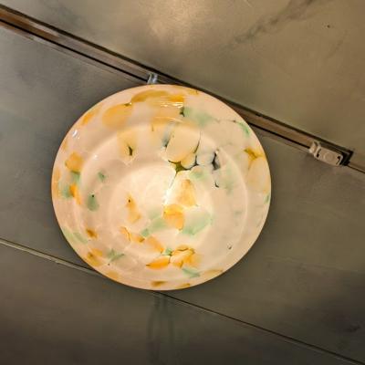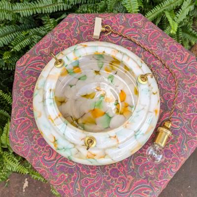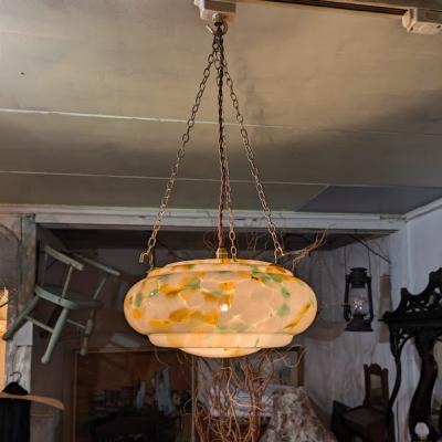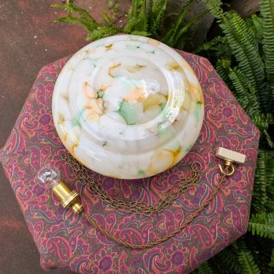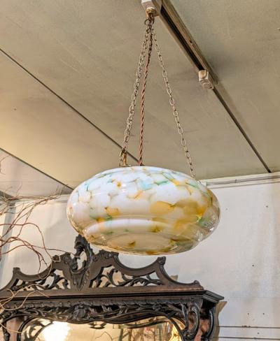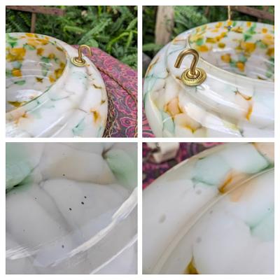 乳白色のオパールガラスに、オレンジやグリーンの色ガラス片を溶かし込んだアールデコのハンギングボウル【45-413】
