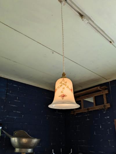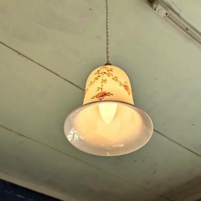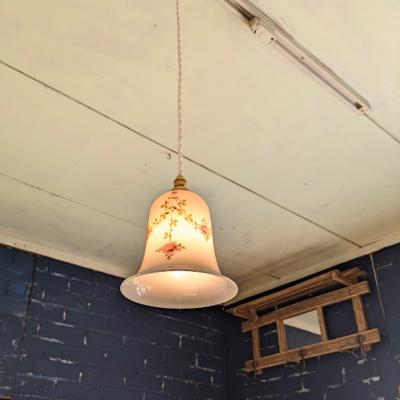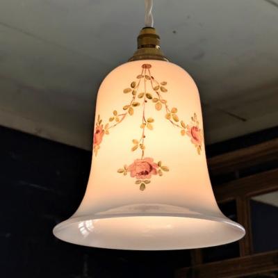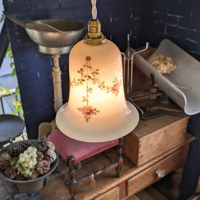 エドワーディアン時代(1900年代初頭)に流行したデザインが優しいタッチで手書きされています。柔らかな乳白ガラスを通した灯りは、お部屋全体を優しい光で包み込みますよ。ベル型のすっきりしたデザインは使う場所を選びません。
