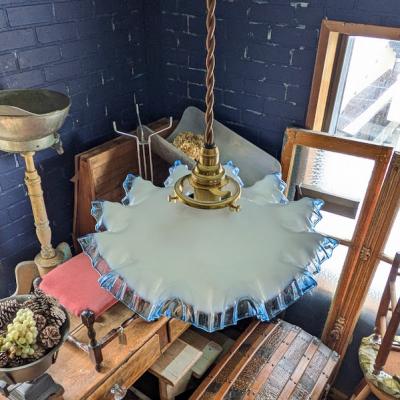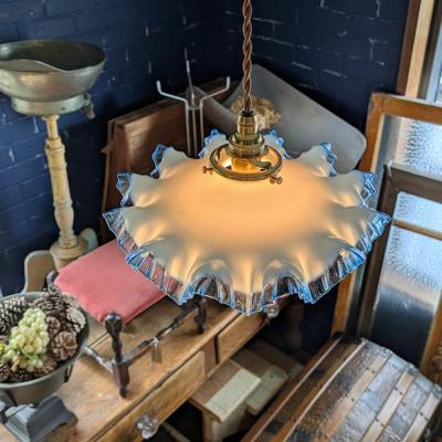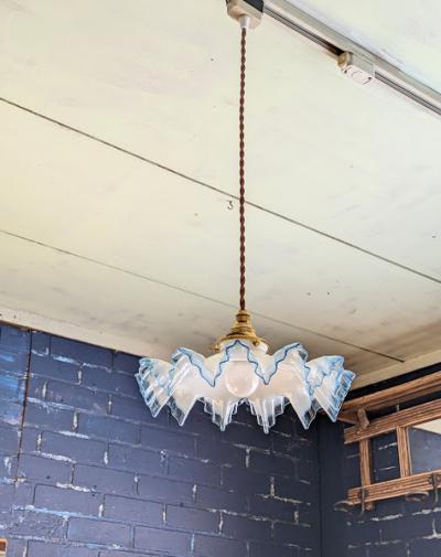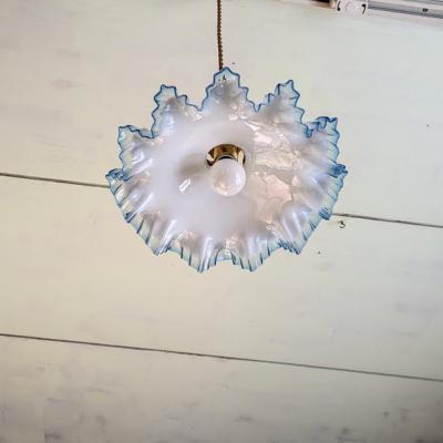 青い縁取りが美しい大きなフリルのガラスシェード【45-369】