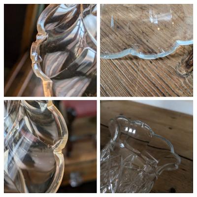 こちらのシェードはフチにカケが4カ所あるためお求めやすい価格で販売しています。全体のデザインにカットが入っているため天井に吊るした際にかなりよく見ないとわかりませんが、傷ありであることを画像にてご確認ください。
