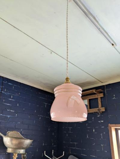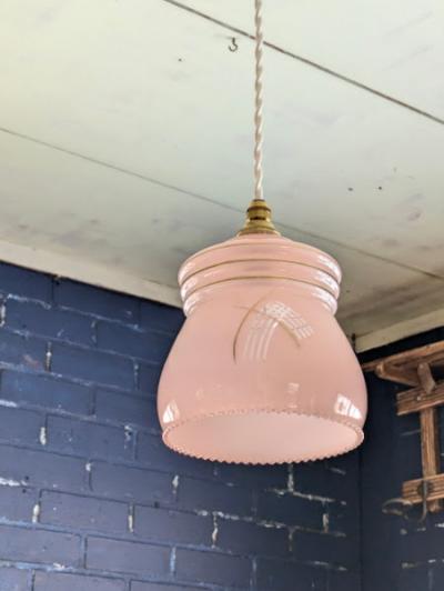 優しいさくら色が印象的なガラスのペンダントライト【45-118】