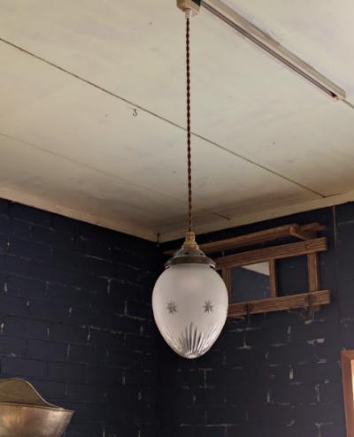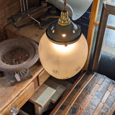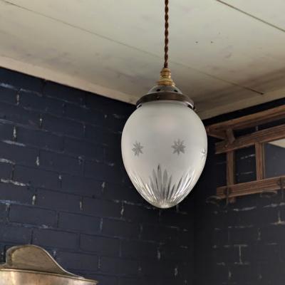 やわらかな印象のガラスをベースに、星形モチーフと放射状に施されたカットが美しいガラスシェード【45-239】