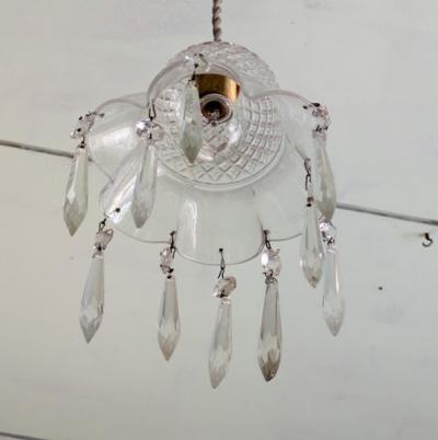 小さいながらも存在感や透明感があるため、玄関や階段ホール、ダイニング、アクセント照明としてもおすすめです。コード・ソケットは日本仕様(E17)に交換済みで、点灯確認済みのため安心してお使いいただけます。